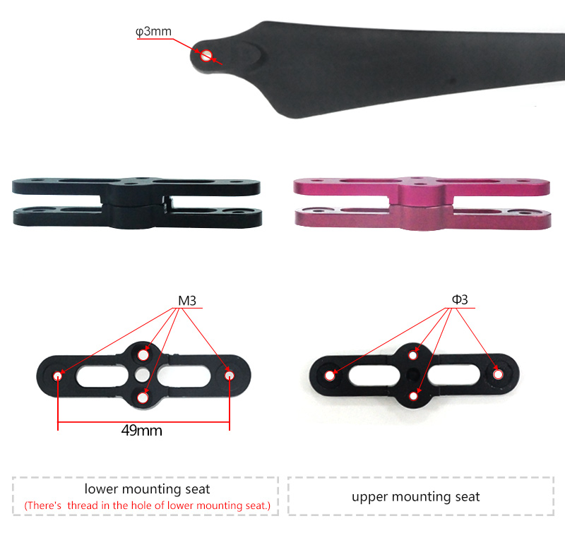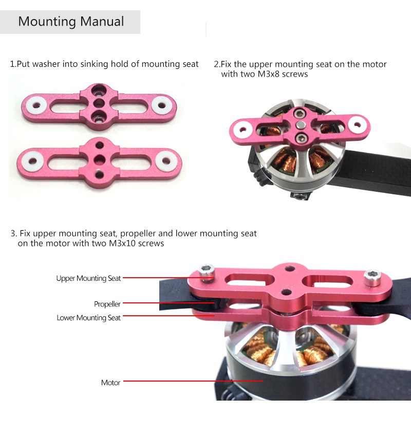 It adopts 6061T6 aluminium alloy processed by CNC.The qucik detach is suitable for all kinds of motor which shaft is below 4mm and pitch-row is 12mm for M3 screw.It is quite easy and convenient to operate.