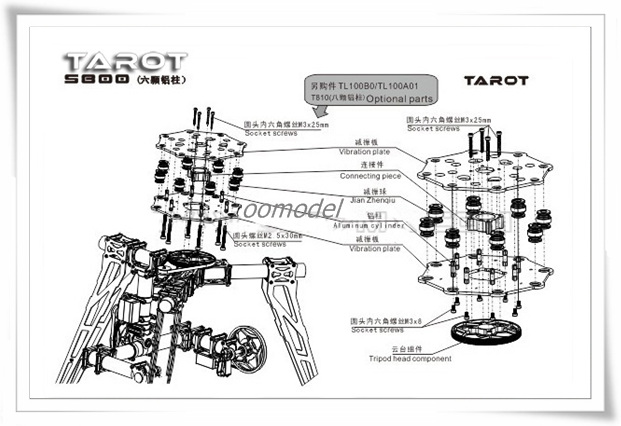 Using 6 pcs aluminum hexagonal bolt to connect with DJIS800/TAROT T810