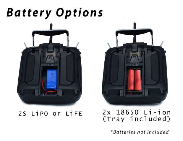 ● Аппаратура работает от четырёх пальчиковых батарей класса АА, допускает использование аккумулятора Li-ion (3,7 В-6В)