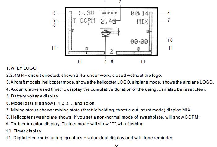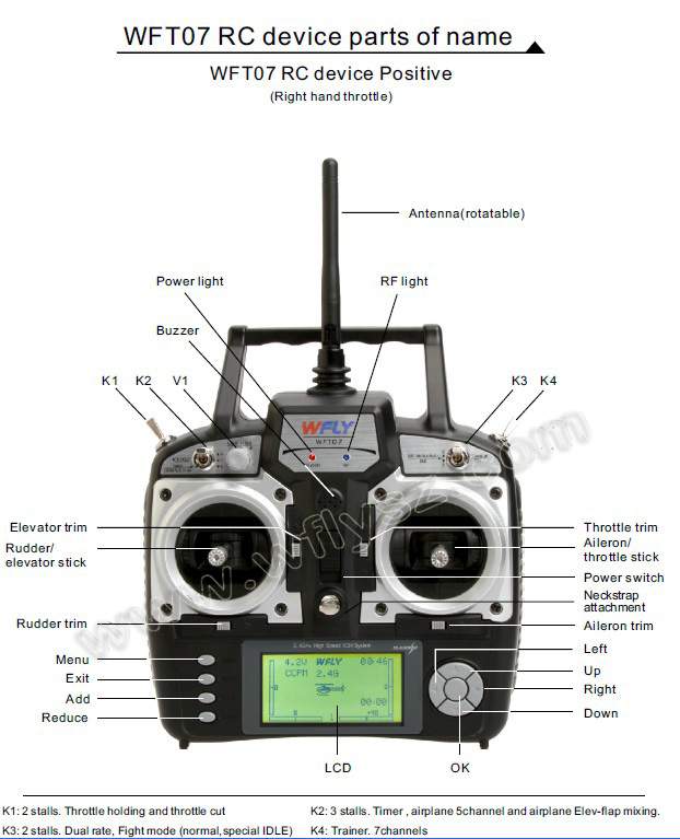 Our Company insist of the"honesty, technology innovation, quality service" business purposes and philosophy, to thank our old and new customers long-term support and love of the WFLY (World Fly) technology, is launching a 2.4G WFT07 7 channel Multi language display remote control equipment. Which equipment will uphold our high reliability, high speed, high-quality design, energy saving voltage down to 3.7V.