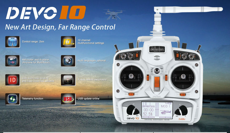 Компьютерная аппаратура управления с LCD дисплеем, совместима с моделями Walkera серии DEVO, имеет вертолетную и самолетную программы